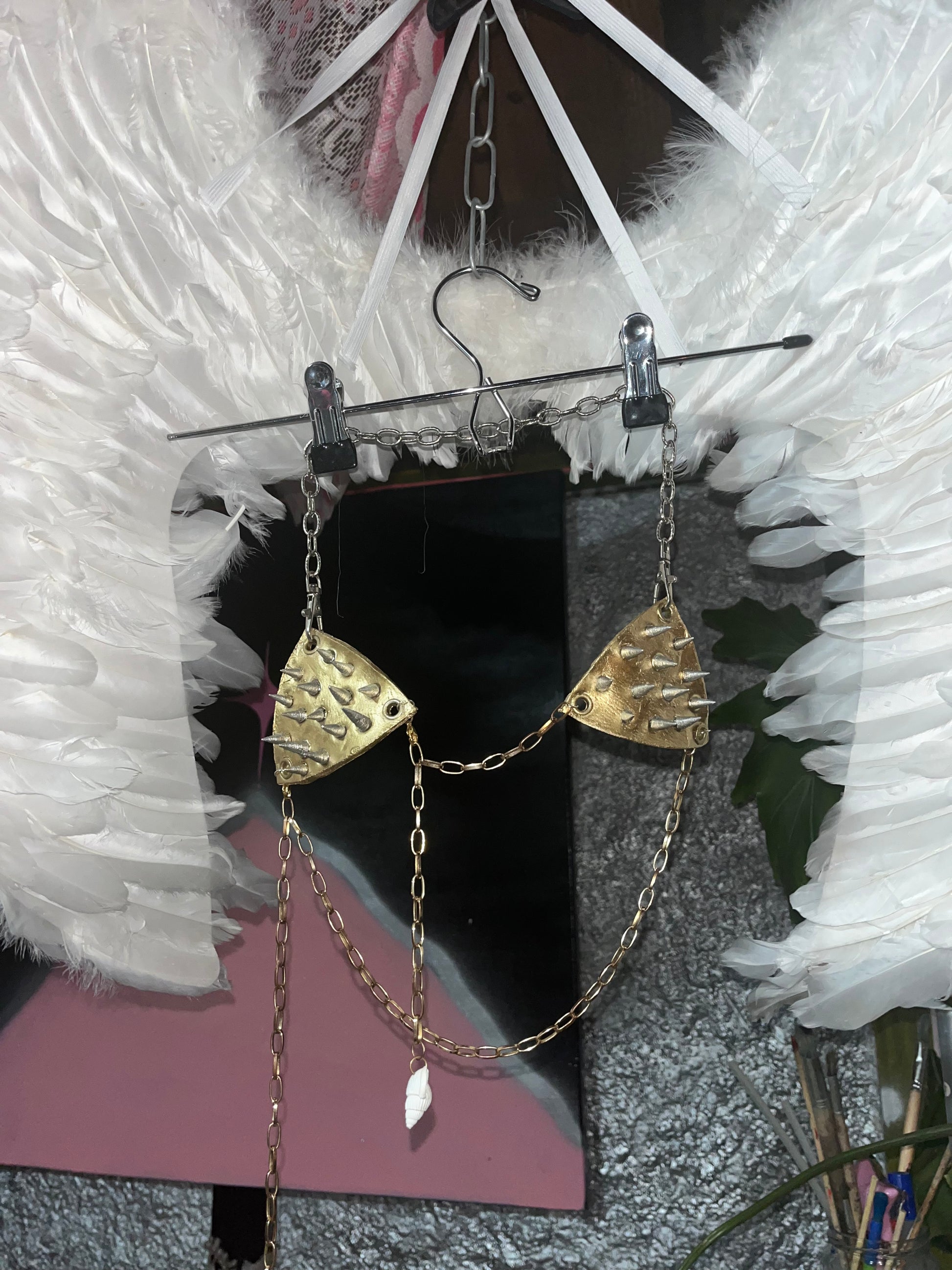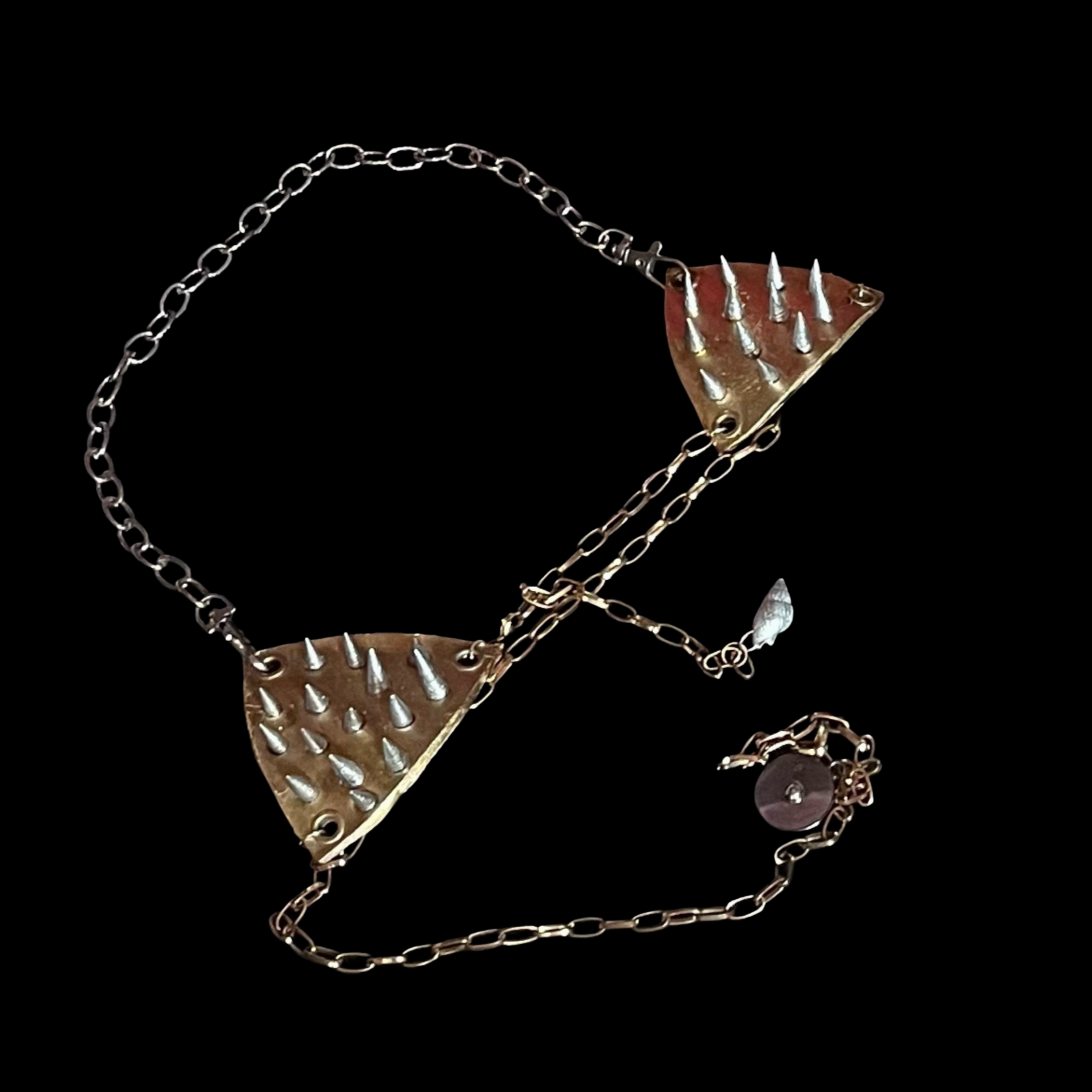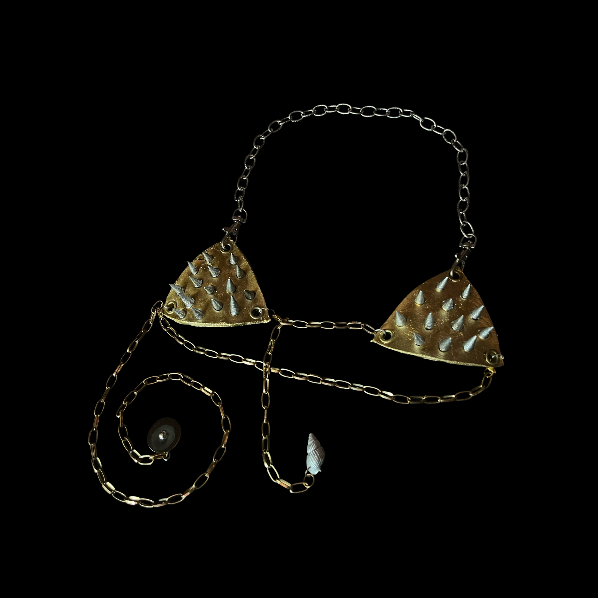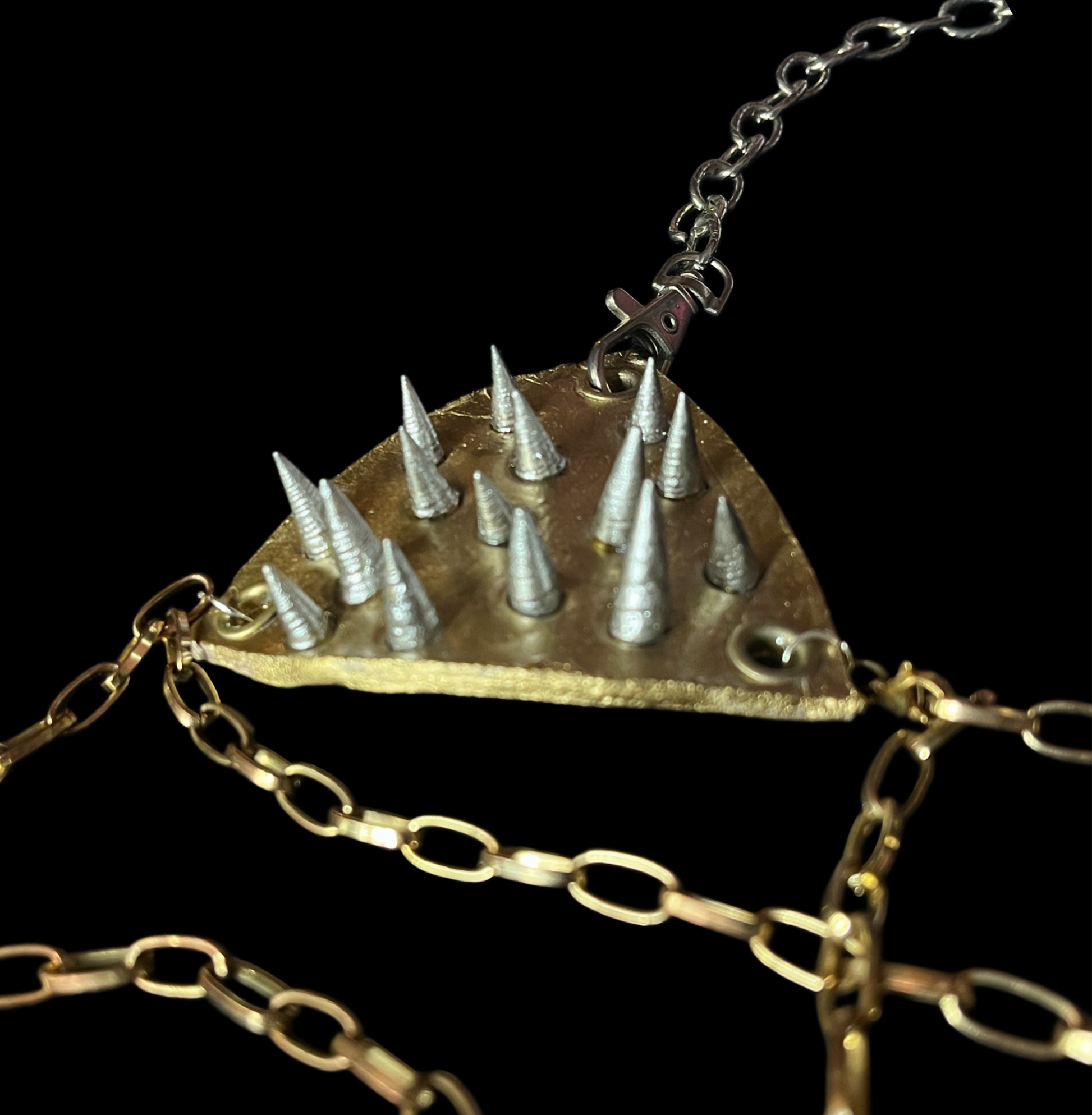 Top de cerámica bañado en resina. Las púas son conchas recolectadas. Cadena ajustable. Medidas: 7cm x 7cm x7cm entrega inmediata, triángulos a medida con entrega en 15 dias.